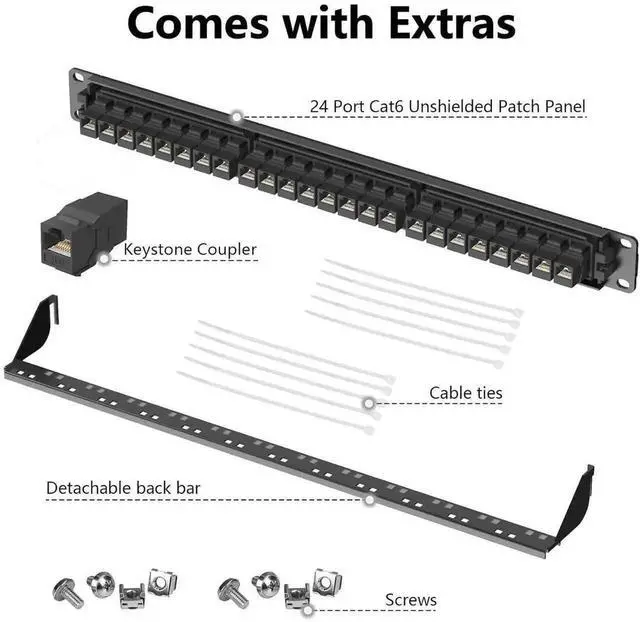 Tool-Free Installation: Preloaded with 24 Cat6 RJ45 keystone couplers, this patch panel requires no punch down tools simply plug cables into the couplers for a quick and hassle-free setup.