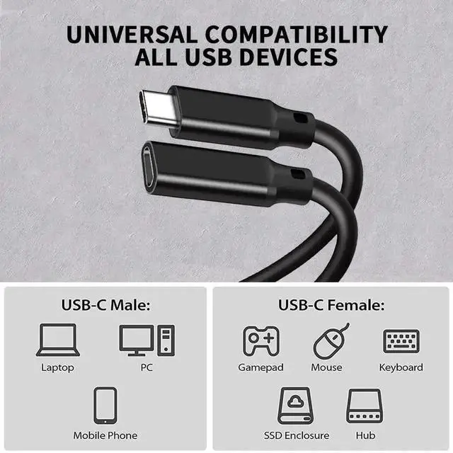 ![Alt view image 5 of 7 - JVFYI USB C Extension Cable 3.3FT,[USB 3.2 Gen 2*2] 20gbps Male to Female Type C 5A PD240W Fast Charging Cable 4K@60Hz Video cable for MacBook Pro/Air,iPad Pro,iPhone15 16,SSD,Switch [Black]](https://c1.neweggimages.com/productimage/nb640/C2ZPS2601260EH4LF57.jpg)