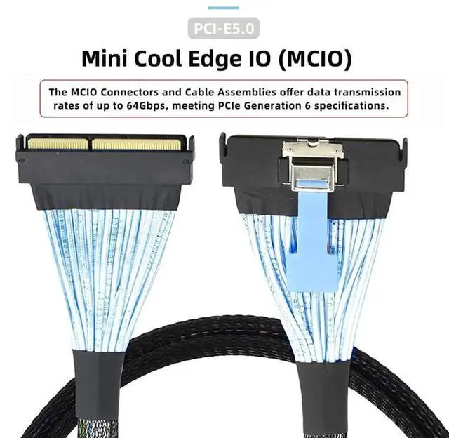High-performance cable for networking and server equipment: The MCIO Mini Cool Edge IO is designed to support a wide range of protocols, including SAS, PCIe, Ethernet, and more, ensuring optimal performance for your equipment