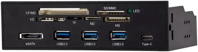 Multi-function front panel gives you direct access to your memory cards, USB 3.0, USB C, and eSATA ports on your PC. Easily transfer your videos, music, photos, data with this blazing fast gadget.