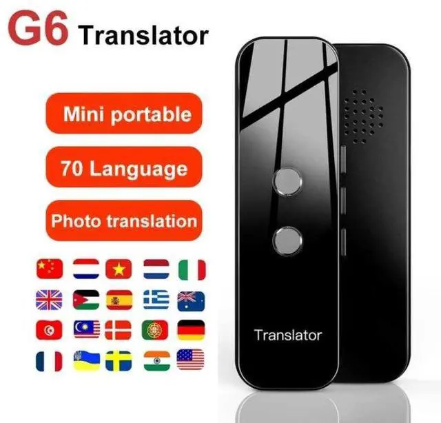 The G6 Smart Translator is a compact portable device that delivers real-time voice translation across up to 137 languages, ideal for travel, business, and everyday international communication. Its Bluetooth connectivity lets you pair with Android and iOS smartphones for seamless voice and text translation. With advanced speech recognition technology, the G6 accurately interprets spoken language and plays back the translation instantly, helping you connect naturally with speakers of other languages. The device also supports two-way translation, allowing conversations back and forth without confusion.