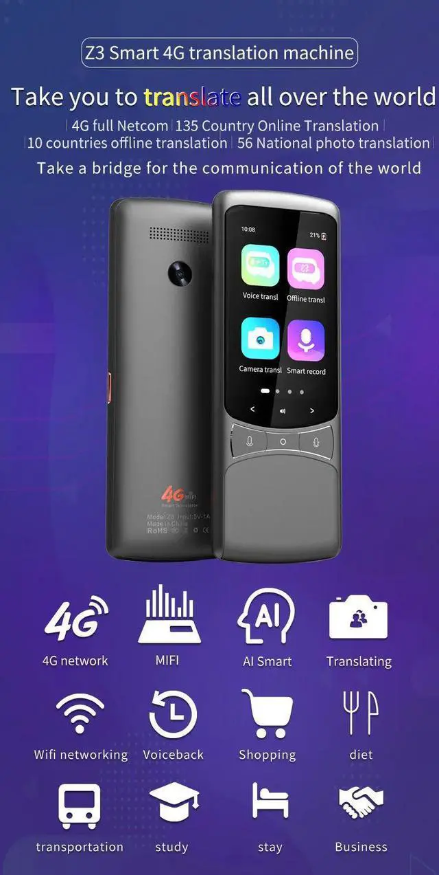 Language Translator Support 138 Languages, Instant Translation Device /Photo/English/Spanish Translator, for Business Travel