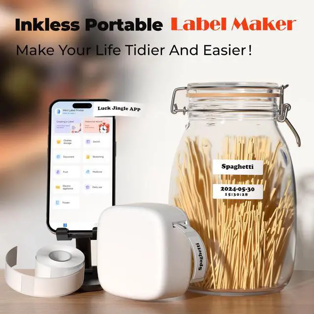 A thermal mini label printer with transparent label function, suitable for use in the kitchen.