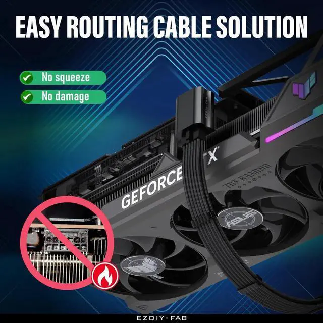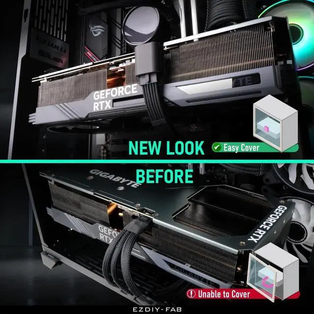 The perfect solution for users experiencing trouble with their RTX40' series graphics card power cables protruding too far from their PC case, preventing the side panel from closing properly; Please check the distance more than 26mm between side plate and graphics card.