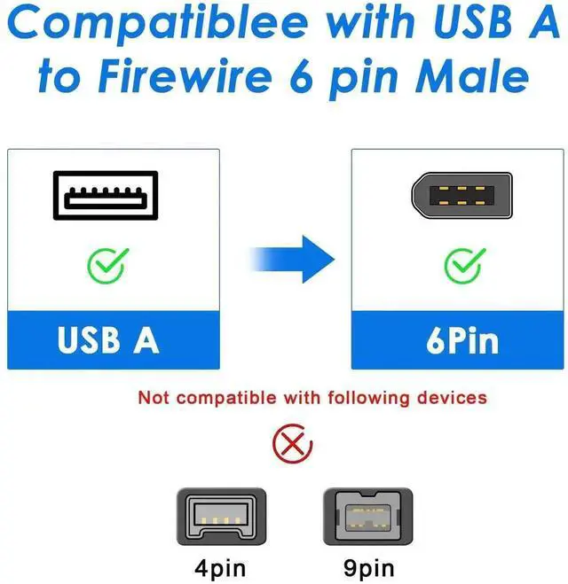 Scope of application: Early Mini DV & D8 cameras, digital camcorders, digital cameras, printers, scanners, external hard drivers, old MOTU audio converters, sound cards, PC (with Firewire 400 card), old old Mac/Mac Mini, 2001 Powerbook G4 and other devices with IEEE 1394-a 6-pin female ports.