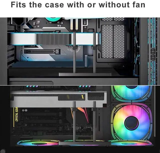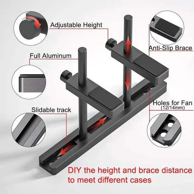 GPU Support Bracket Dual Brace: Fan mounting Adjustable Aluminum Graphics Card GPU Sag Bracket Video Card Stand Holder Graphics Card Bracket, Support Big GPU and 12/14cm Fan,