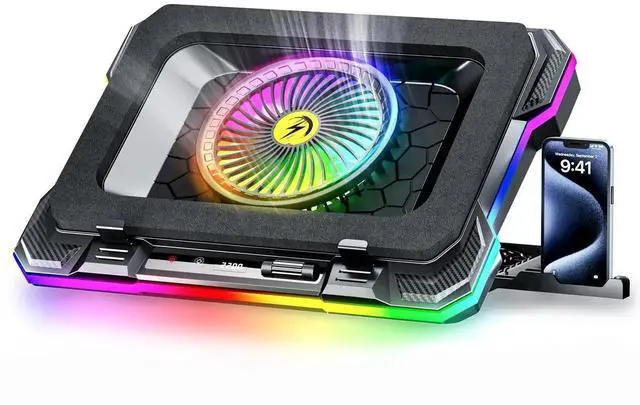 Efficient Operation: Enjoy a quiet, distraction-free experience with fan noise levels ranging from 25-70dBA, providing effective cooling without disturbing your work or gaming sessions. ^^ Phone Holder and