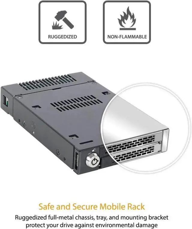 Installs into any standard external 3.5 device bay or floppy bay