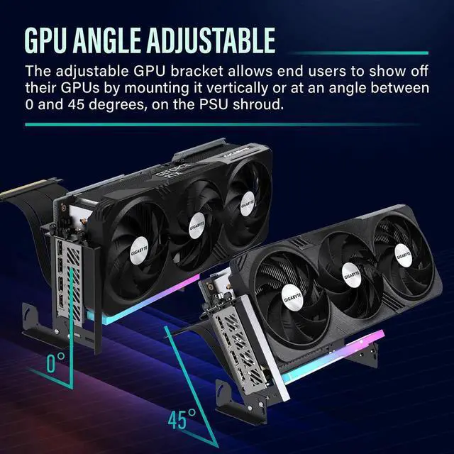 Enhance Cooling Efficiency: Adjustable bracket allows mounting of GPU vertically or at an angle for better heat dissipation on PSU shroud or any metal plane