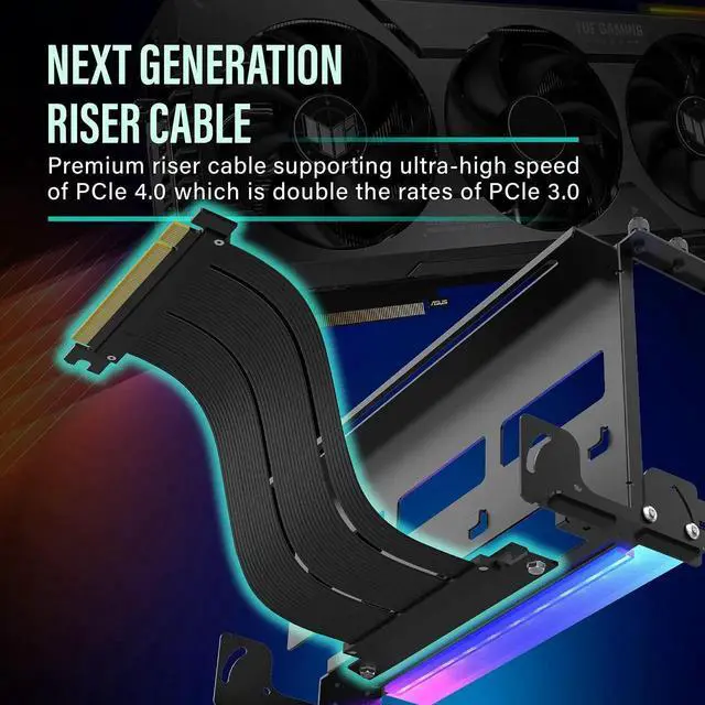 Compatible with Latest Models: Features Gen4 riser cable and compatible with RTX 4090, RTX 4080, RTX 4070ti, RTX 30' Series, and RX70' Series. Prior testing of riser cable onto GPU is recommended. Please refer to length spec image to confirm compatibility with your chassis.