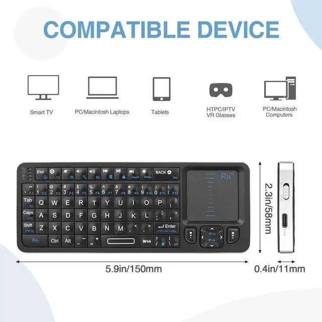 Backlit DesignThe 2.4G mini wireless handheld keyboard has backlit mode. Easy to use even in dark environments. Built-in a Li-ion rechargeable battery. With auto sleep and wake-up function, it can remain a long working time.