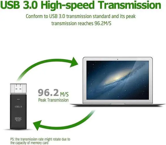 Designed with fast, plug and play USB 3.0 transfer tech, offering up to 5 Gbps data transmission speeds, and fully backward compatible with USB 2.0 and 1.1 ports without driver downloads.