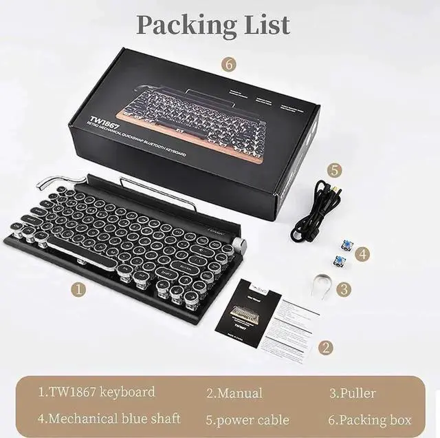 Built-in hot swap blue switch: The classic typewriter style is integrate with premium hot swappable blue switch keyboard technology. Accelerate the speed of typing and enjoy the " Click" feeling by the old royal typewriter