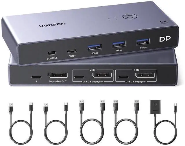 UGREEN 8K DisplayPort KVM Two-in-One Converter (Supporting DP1.4 format, equipped with 4 USB 3.0 interfaces (3 USB-A interfaces + 1 USB-C interface)) can achieve 8K@60Hz and 4K@240Hz display output, a
