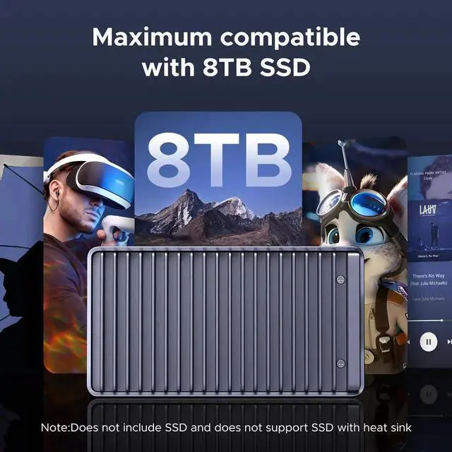 Supports up to 8TB drives: This enclosure is compatible with drives up to 8TB, giving you ample space for work, gaming, and video playback anytime, anywhere. Note: This is a NVMe enclosure only. SSD not included.