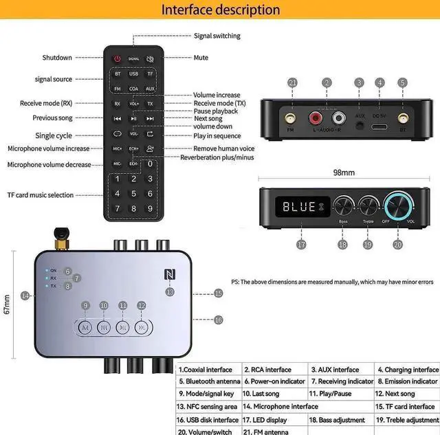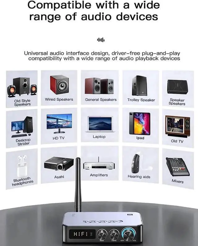 Two-in-one Bluetooth receiving (RX) and Bluetooth transmitting (TX).