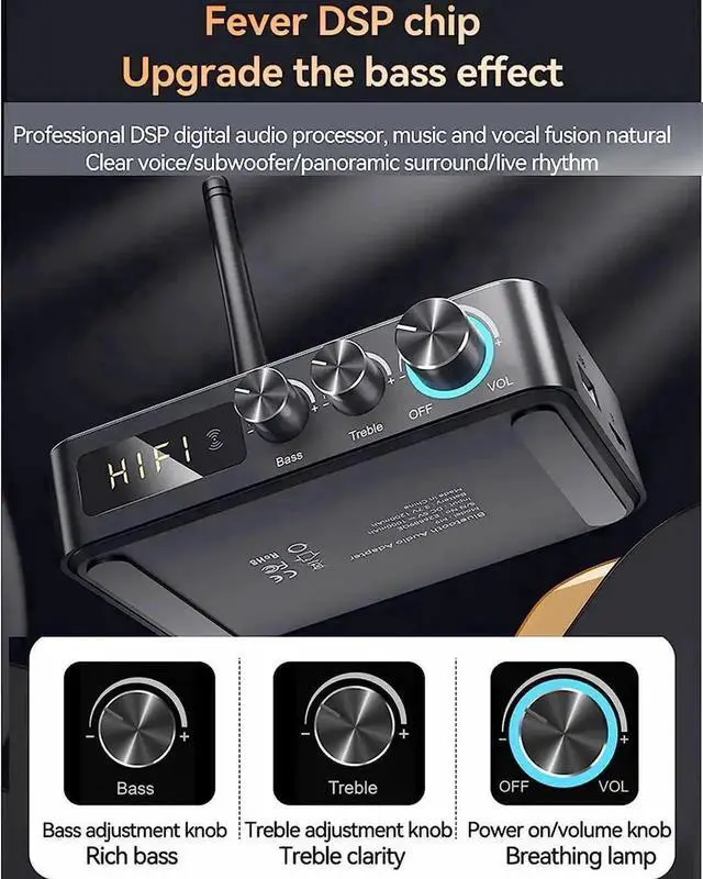 Built-in DSP decoding chip, heavy bass effect, the device supports treble/bass button adjustment.