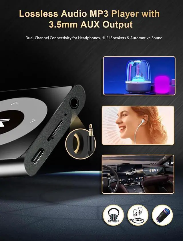 [The Latest Version of Bluetooth 5.3]Latest Version Bluetooth 5.3 means that faster transmission speed, longer connection distance and stronger anti-interference ability. Reduced power consumption for more power savings. You can also connect to other playback device to play music through the 3.5mm AUX cable.(PS: This player can only pair with Bluetooth speaker and Bluetooth headphone.)