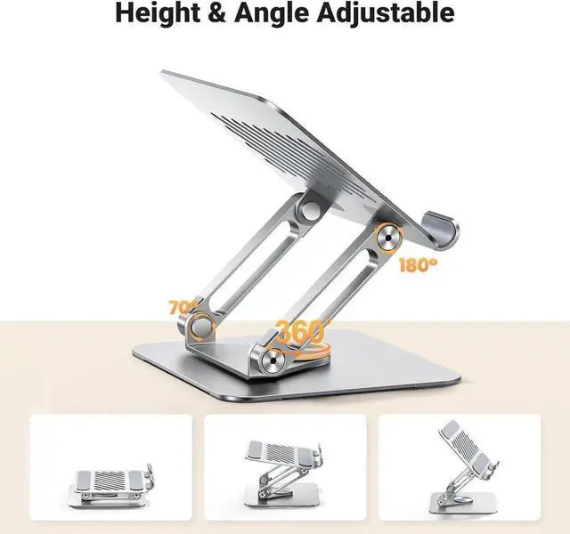 UGREEN Tablet Stand Holder for Desk with 360° Rotating Base Aluminum Dual Rod Support Adjustable Home Office Accessories Compatible with iPad Pro 13 12 11 Air Mini 5 4 3 Phone E-Reader Silver