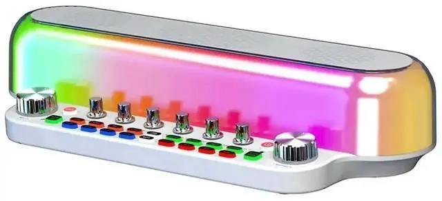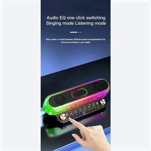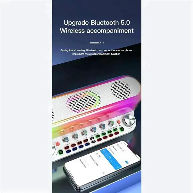 Portable Loud Karaoke Speaker with Two Mic Wireless Bluetooth Sound Card Speaker All-In-1 Sound Card for FamilyKTV White