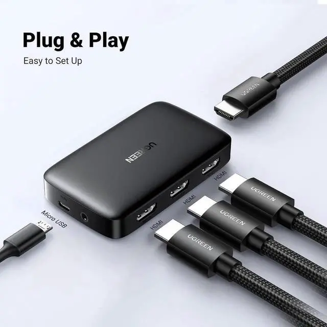 HDMI SWITCH 3 IN 1 OUT: This UGREEN 4K HDMI switch box makes it easy to stream video and audio from 3 HDMI devices to 1 HDMI display. Our HDMI switch 3 port has two switching methods, manual switch, and remote control, which frees you from plugging and unplugging HDMI cables, so you can easily enjoy work, and play games between 3 devices