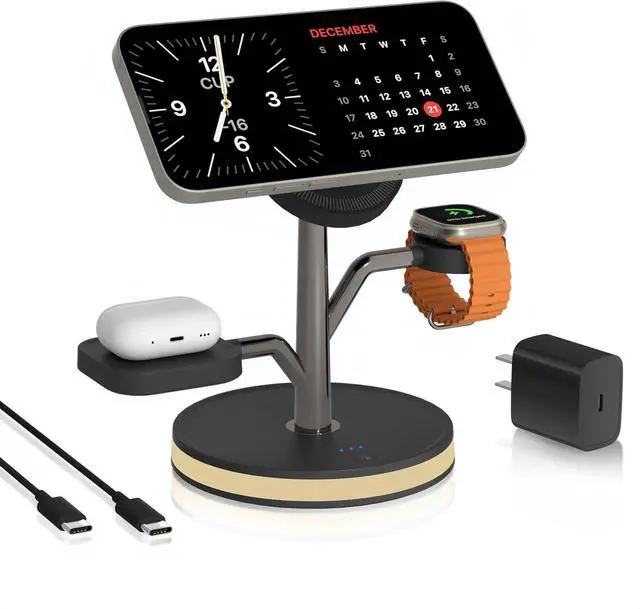 Multi-scenario compatibility: The integrated design of this watch and phone charging stand reduces desktop clutter, making it ideal for use on nightstands, desks, or in cafes. The magsafe charging stand is also portable, perfect for travel, business trips, camping, dining out, and more. This 4 in 1 iphone stand charger fulfills all your charging needs, enhancing your quality of life. A minimalist wireless phone charger stand solution for a well-organized daily routine.