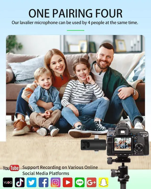 Ultra-Lightweight Lavalier Microphone System: Our Lavalier Microphone System includes one receiver and four transmitters with compact clips for easy attachment. The ultra-lightweight design ensures minimal impact on your clothing, offering professional audio quality with maximum comfort. Perfect for interviews, presentations, and content creation.