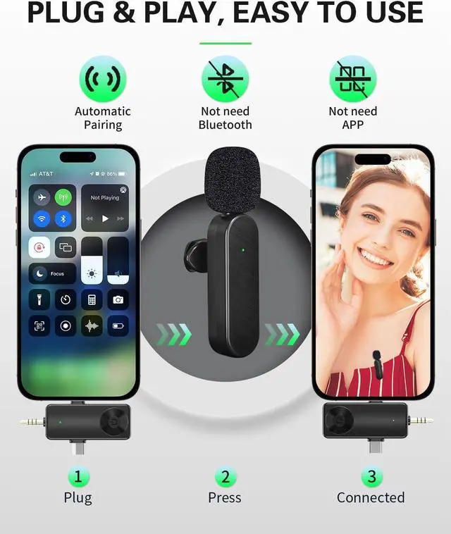 Wireless Lavalier Microphone for Apple Android Computer: This smart wireless lavalier microphone compatible with iOS and android system. including iPhone 14 below and the latest iPhone 15, 16, 17 iPhone series which is type c port. most Android smartphones except Samsung Galaxy A03s and Moto G Stylus 5G, laptops and computersa game-changer for video recording, interviews, and live streaming.: Enable the " OTG" function on your device before using the mini usb c microphone.