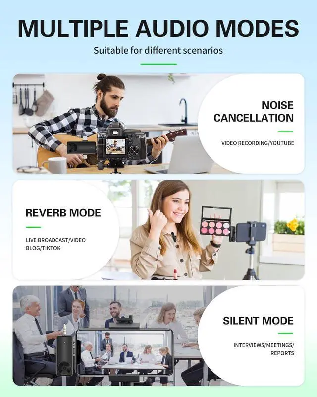 2.4G Wireless Transmission and Long Battery Life: The upgraded wireless microphone uses 2.4GH z wireless transmission technology, 65 feet unobstructed effective distance, you can move freely during video recording. The transmitter has a built-in rechargeable battery with up to 6 hours of operating time. The microphone also supports charging while recording. Even if the battery runs out, simply recharge it to resume use.