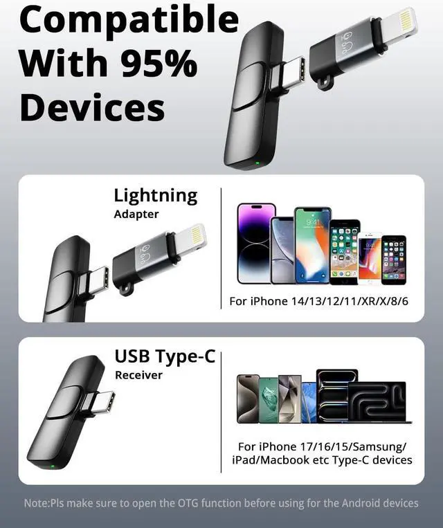 [Widely Compatible Design] SmaFun wireless lavalier microphone is a content creator' s essential, compatible with smartphones, PCs, laptops, and tablets by type-c, lightning connectors. Ensuring seamless recording for professional videos on YouTube, TikTok, and more.