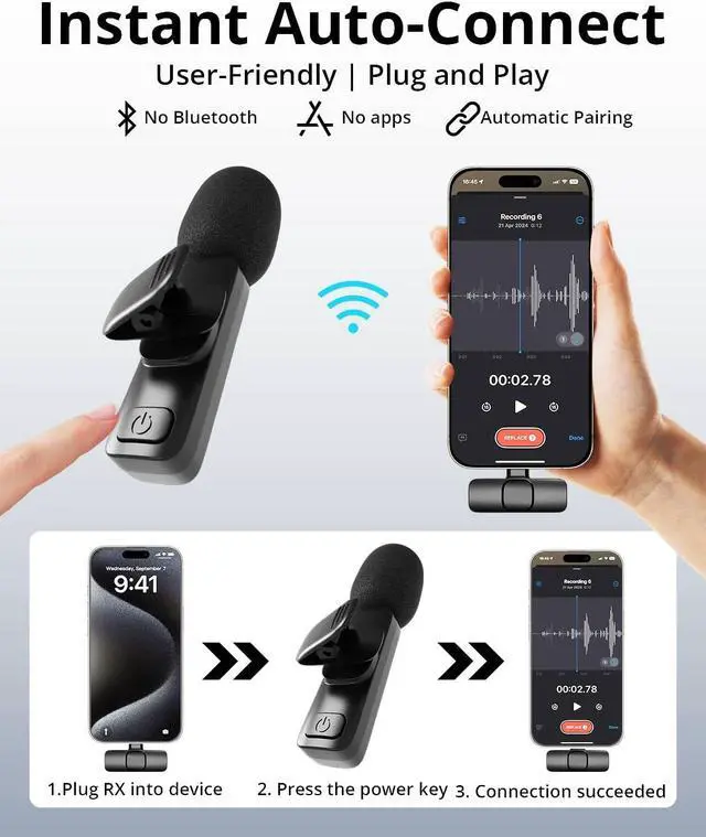 [Easy Plug and Play Setup]SmaFun Bluetooth microphone Offers hassle-free operation, ideal for vlogging, podcasting, and outdoor filming without complex setups, allowing you to focus on creating quality content.