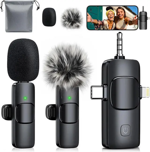 Portable Creation Kit: Transform any location into recording studio with lightweight portable microphone weighing just 2.89 ounces. Complete package includes two transmitters with clips, receiver, charging cable, storage bag, and windproof covers. Perfect for content creators, journalists, teachers needing reliable audio across diverse settings