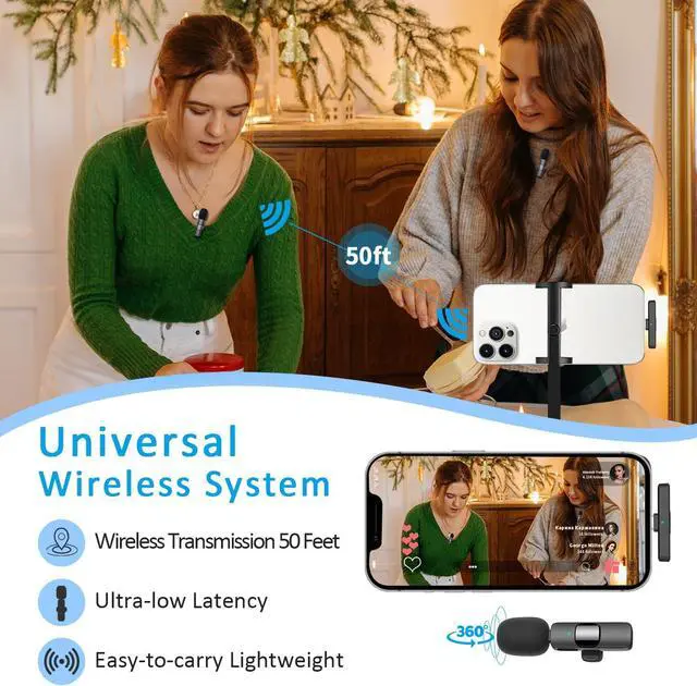 Universal Wireless System: The wireless mic adopts blue tooth technology allowing you to move your body freely and no longer to be restricted to messy wires while making recordings on different social media platforms like Youtube, Tiktok, etc.