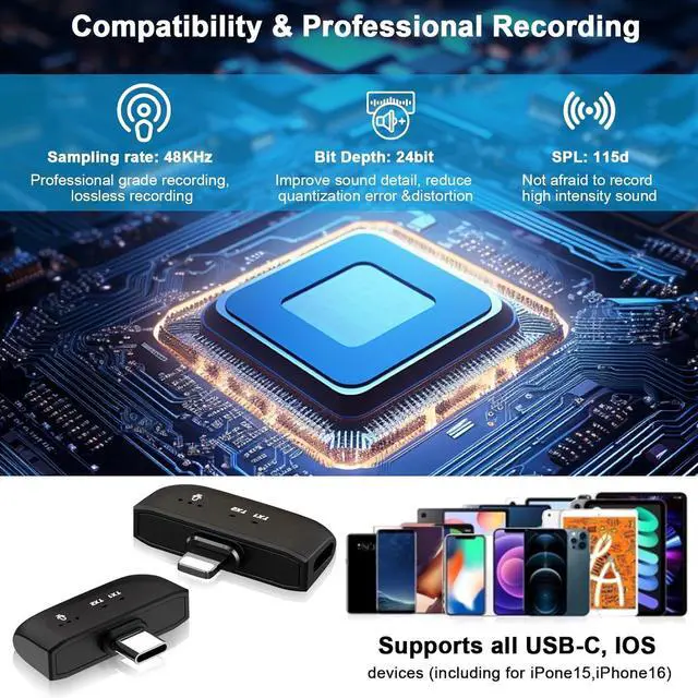 Universal CompatibilityOur lav microphone for iPhone iPad, android, cameras, and computers via included Lightning and USB-C RX. Clips to clothing or uses magnetic pendant for fasion and comfort in vlogs, streams, interviews, or meetings. Perfect mics for YouTube, TikTok, Zoom, podcasts, lectures, Streaming, Interview, video Recording, singing recording and outdoor use