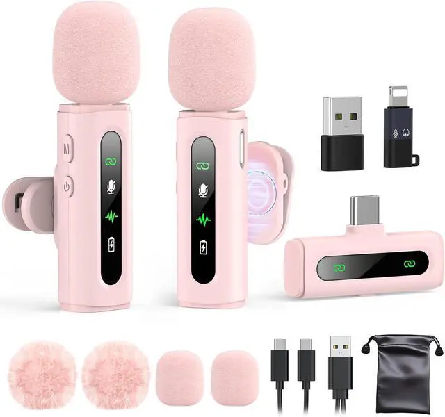 ll Get: GoorDik wireless USB C mic package includes 2 wireless microphone transmitters, 1 wireless microphone receiver, 1 USB charging cable, 4 pink foam mic covers, 2 furry outdoor microphone windscreen muffs, 1 USB-A adapter, 1 Lightning adapter, and 1 user manual. Plus, our dedicated customer support team is always available to assist you with any questions or concerns