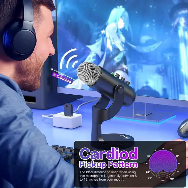 Crystal-Clear Audio with Top-Address DesignExperience broadcast-quality sound with a 48kHz/24bit condenser mic expertly tuned for crystal-clear clarity and rich depth. Its cardioid pickup pattern effectively isolates your voice and reduces background noise, making it perfect for gaming, live streaming, podcasting, Zoom calls, YouTube videos, ASMR, voiceovers, and content creation. The built-in DSP noise-canceling chipset ensures your audio stays clean and professional. For optimal results, speak directly into the top of the micits top-address design delivers focused, studio-grade sound every time.
