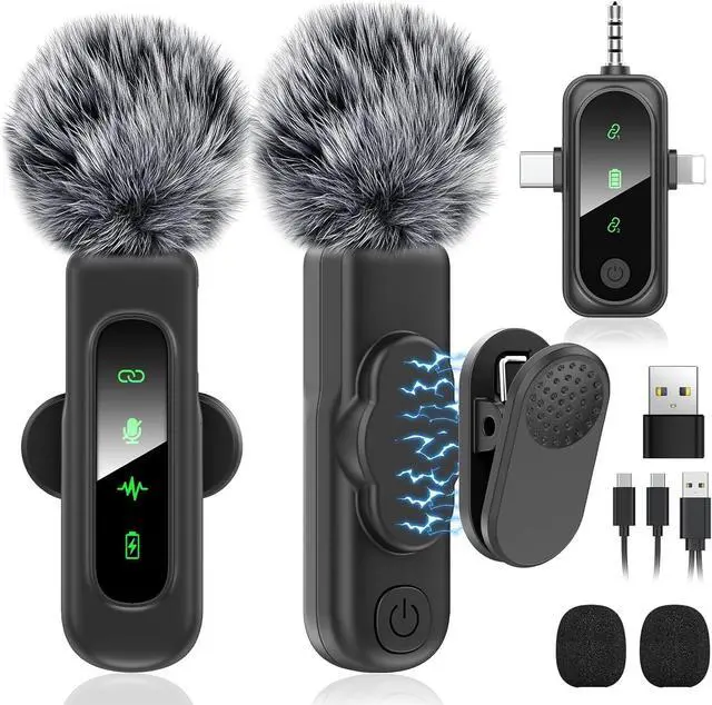 What You will Get2*Wireless Lavalier Microphone, 1* Microphone Receiver, 1* USB Adapter, 1* USB C Charging Cable, 1* User Manual, 2* Foam Mic Covers, 2* Mic Furry Windscreen Muff. 24/7