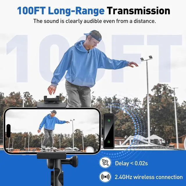 [12Hr Battery & 100ft Range]: The android microphones offer an impressive 12-hour battery life (6 hours for one mic), ensuring uninterrupted high-quality audio recording over extended periods. The 100ft range allows for unrestricted movement without losing connection, enabling capture of every detail with studio-quality audio