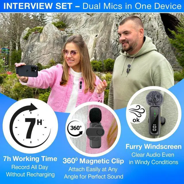 Superior Sound with Active Noise Reduction Capture professional-grade audio anywhere with dual noise modes: Noise Reduction Mode for crystal-clear voice in noisy spaces, and Original Sound Mode for natural tone. Includes 2 furry wind muffs + 2 foam covers for clean recording indoors or outdoors.