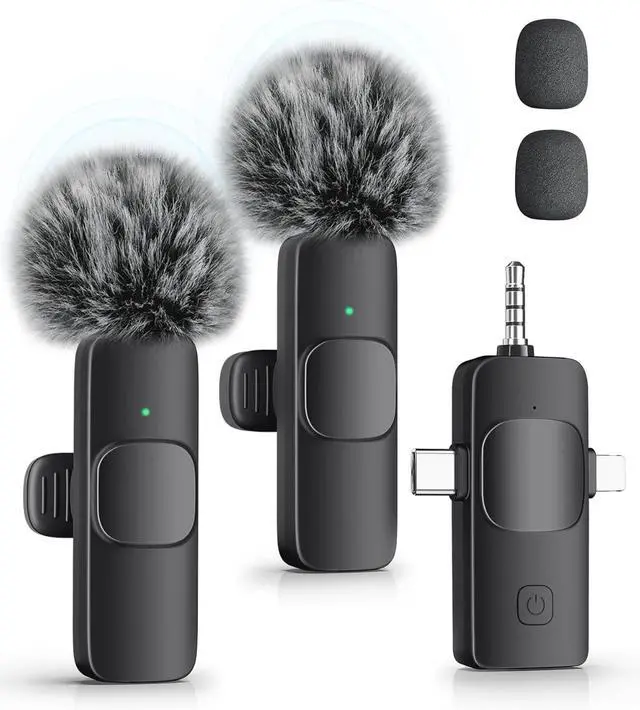 Omnidirectional Sound Pickup: Equipped with high-density windproof foam and a high-sensitivity microphone, it records every sound detail clearly, regardless of the surrounding environment. The package includes 2 lapel microphones, allowing two people to participate in video recording simultaneously.