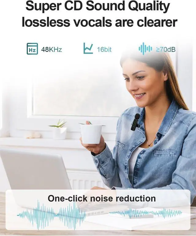 Plug and Play: Our dual wireless microphone adopts advanced professional intelligent noise reduction chip with dual noise reduction modes - noise reduction mode and original sound mode, which can provide clear recording, and comes with high-density anti-spray sponge, which helps to reduce the interference of any noise of mice and improve the sound quality. Wireless microphone is easy to set up, plug and play, (Note: if the matching is unsuccessful, don' t worry, just turn off the device and try again)