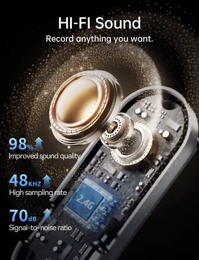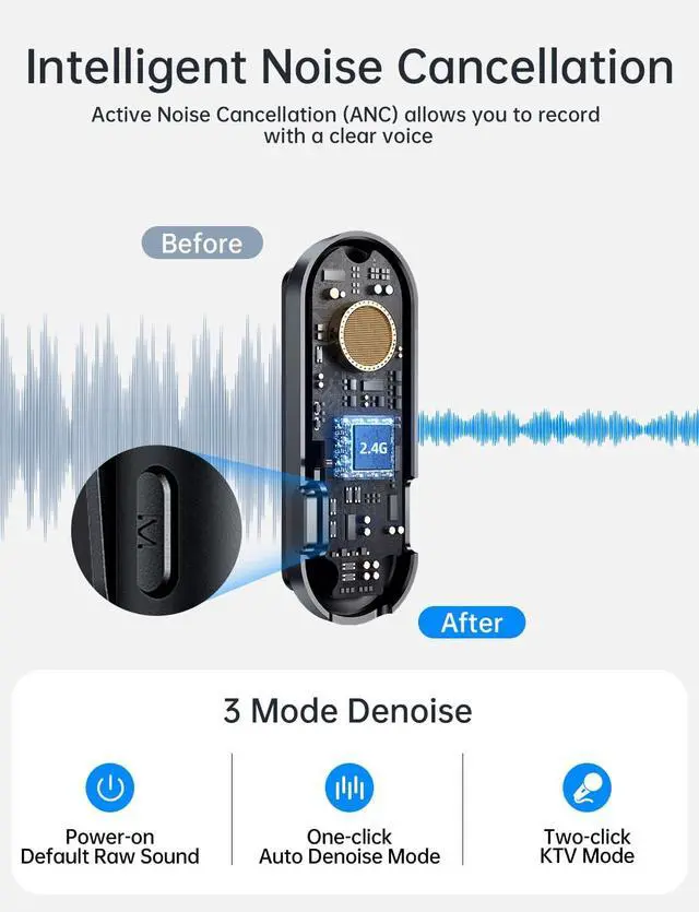 Noise Reduction: Built-in intelligent active noise cancellation ensures pristine sound capture in any environment. Our advanced technology precisely records every detail, even amidst significant noise. Further enhancing performance, a high-density spray-proof sponge minimizes wind noise and other interference. Our AI-powered noise reduction module intelligently filters out unwanted sounds, providing superior anti-interference capabilities and exceptional audio quality.