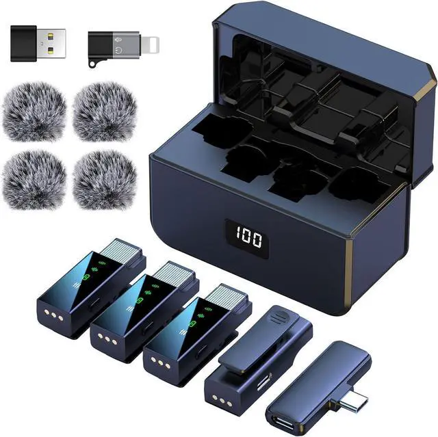 PACKAGE LIST: ZERFUN Charging Case x1; Transmitter x 4; Type-C Receiver x1; Lighting Adapter x1; USB Adapter x1; Windscreen x 4; Charging Cable x1; User Manual x