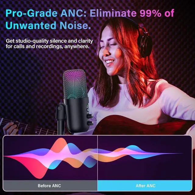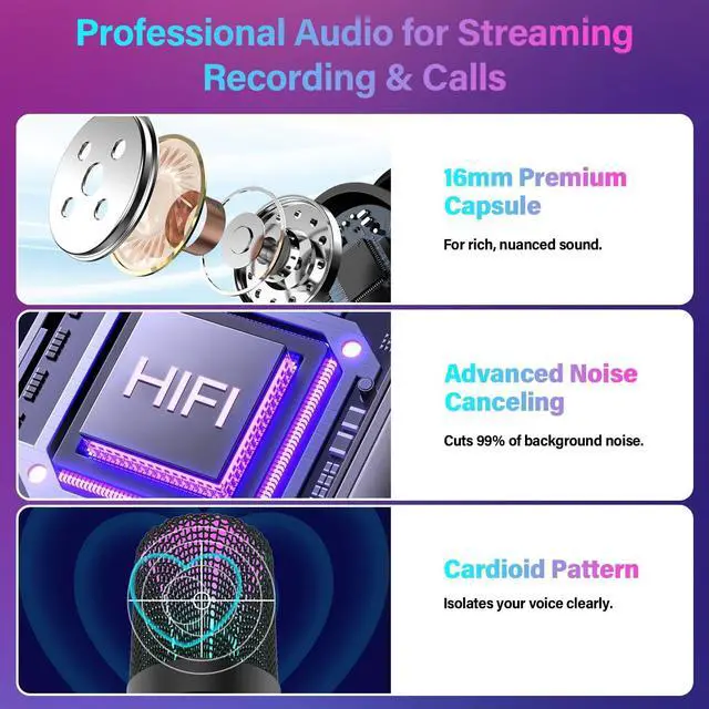 Stylish RGB Lighting & Smartphone Compatibility Dynamic RGB lights create a visually immersive setup for gaming, streaming, or recording. Compatible with smartphones (may require an audio adapter). Adds both aesthetic appeal and functional clarity to your desktop or recording space.