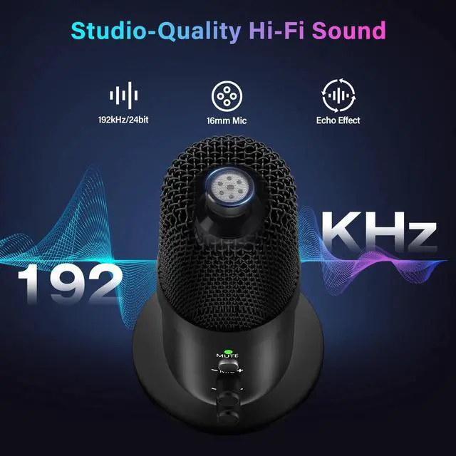 Hi-Res 192kHz/24bit Studio-Quality Audio Equipped with a 16mm high-sensitivity capsule, this USB mic delivers 192kHz/24bit high-resolution audio. Captures every vocal nuance with professional-grade clarity, perfect for streaming, singing, podcasting, or voice-over recording.