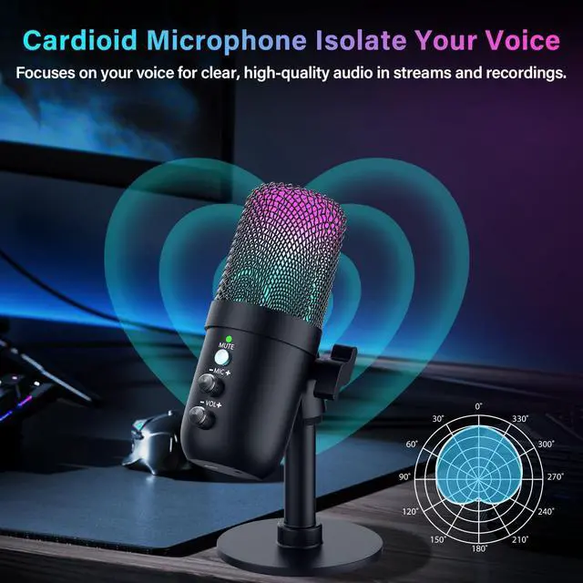 Cardioid Pickup Pattern for Focused Sound The cardioid mic captures sound from the front while minimizing ambient noise. Ideal for recording vocals, YouTube videos, podcasts, game streaming, or online calls. Ensures clear, professional-quality sound for PC, Mac, or PS5 users.