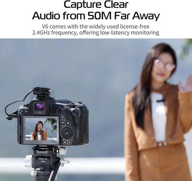Sharp Audio at Distance: Using wireless communication between the radio mic and the receiver to realize long-distance recording. The longest transmission distance is up to 50 meters/164ft. Also support dual microphone simultaneous recording, which is more widely used.