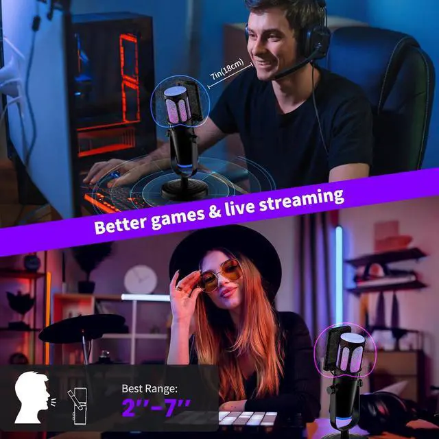 Plug and Play: The microphone for pc is easy to install and compatible with phone, PS4/PS5, desktop, laptop and mainstream operating systems like Windows/Mac OS, without extra software. Quickly start game chat on Discord, Team and Zoom, or stream on OBS, Streamlabs and Twitch platforms