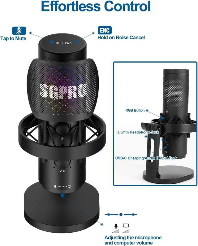 Intelligent Noise Control and Mute Activate advanced noise cancellation to block background sounds by holding the top for two seconds or tap lightly to instantly mute with clear red LED confirmation during live streams