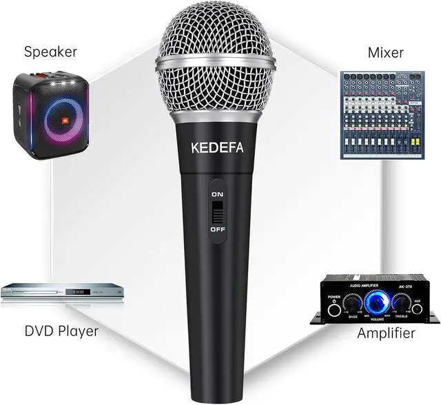 3. Plug & Play - KM58 No battery required, just plug to use. It has a 13.12 ' XLR cable with 1/4" METAL plug, supporting Karaoke Machine, DVD Player, Home Theater, Amplifier, Speaker, and more devices.